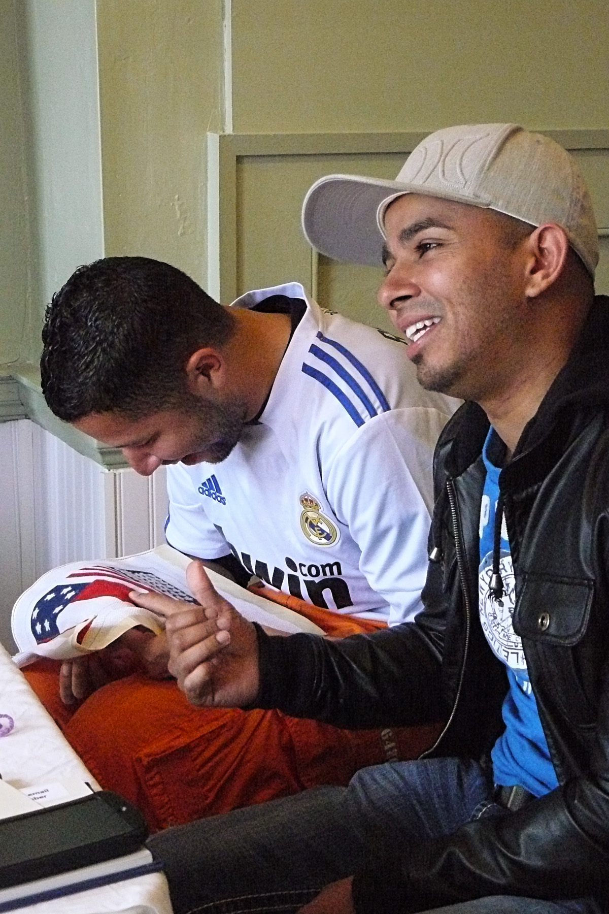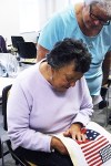 - Remy, Project Chair, helps young stitcher (brother in background), May