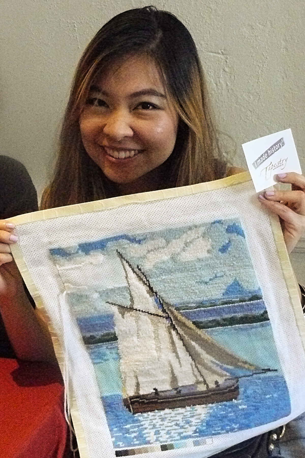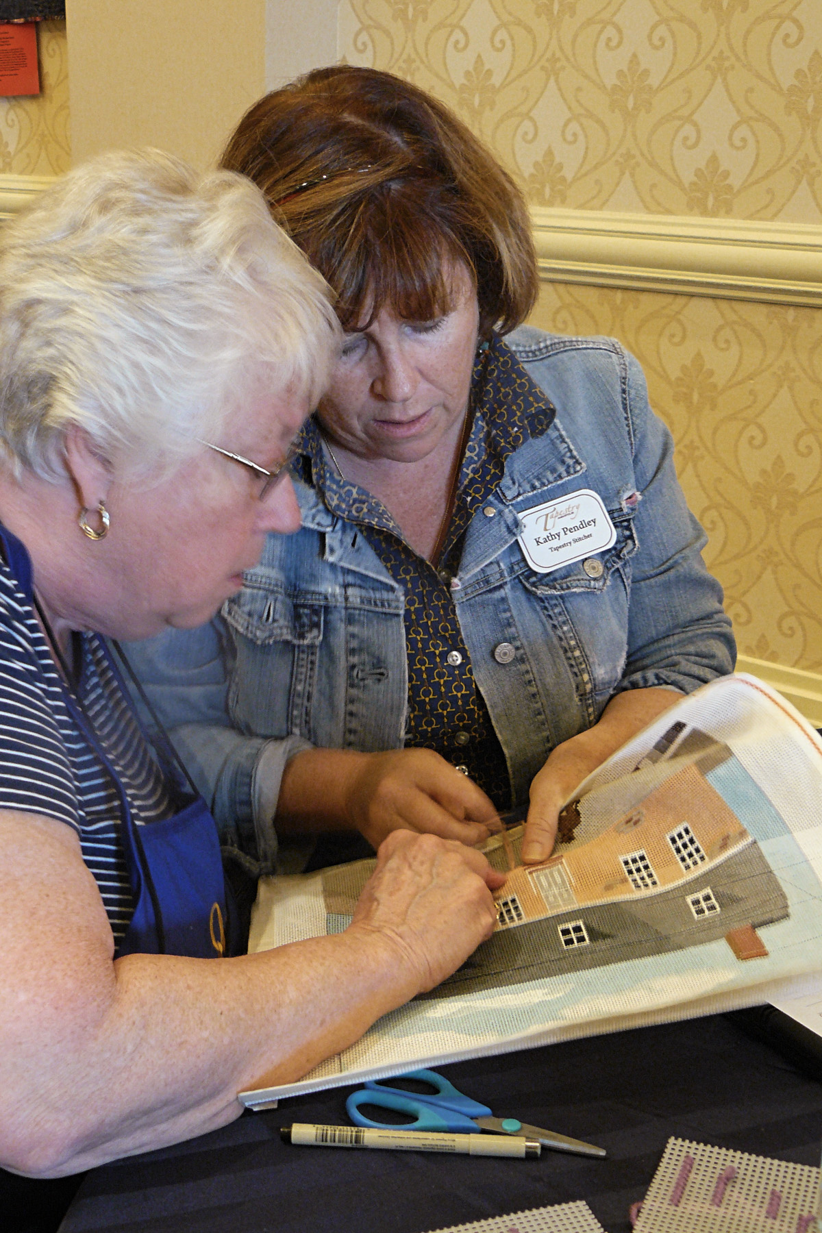 - Kathy, Tapestry volunteer stitcher, International Questers Baltimore Convention, May