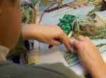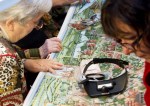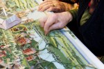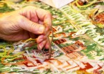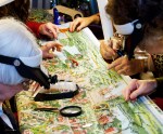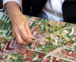 Pictured here are close-up photographs of the stitchers diligently working on completing the large 19th century tapestry. At this point (early January 2012), the stitchers have been working for a little over a year on this canvas. They anticipate having to work another year or so to complete it.y